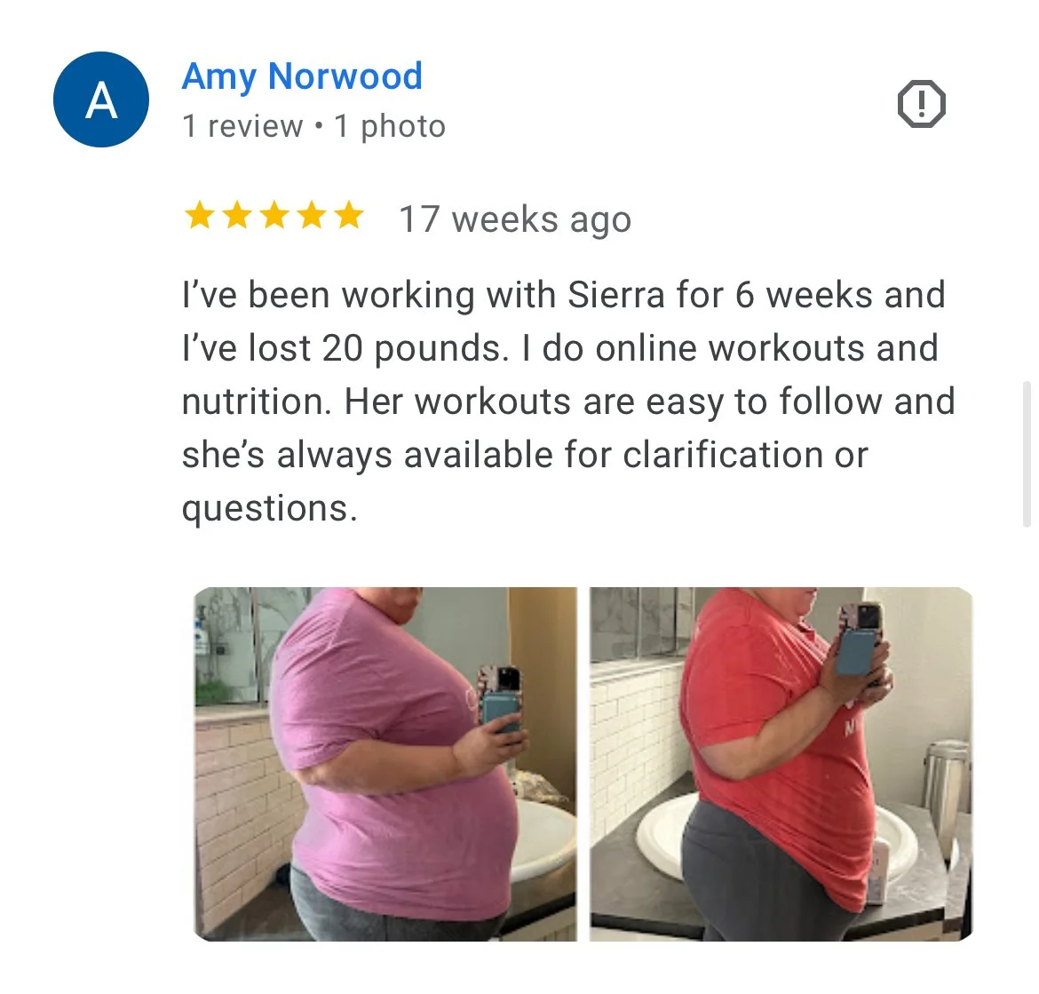 Sierra has a USAPL Club Coach certification, a Bachelor of Science from Midwestern State University and a Master of Science from Texas State University. Sierra also competes in USAPL powerlifting meets in Texas.