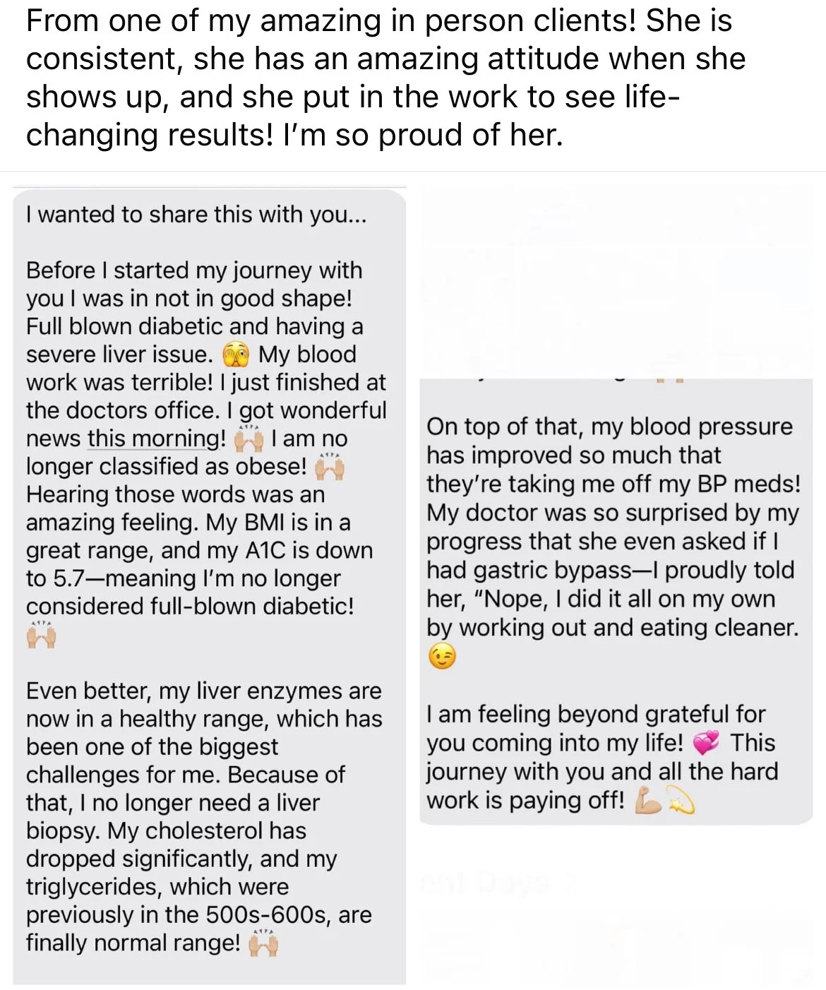 This package includes weekly updates for personalized workouts. This is offered online 2-4 sessions a week. Clients may contact Sierra at any time during the week for questions, calls, etc.